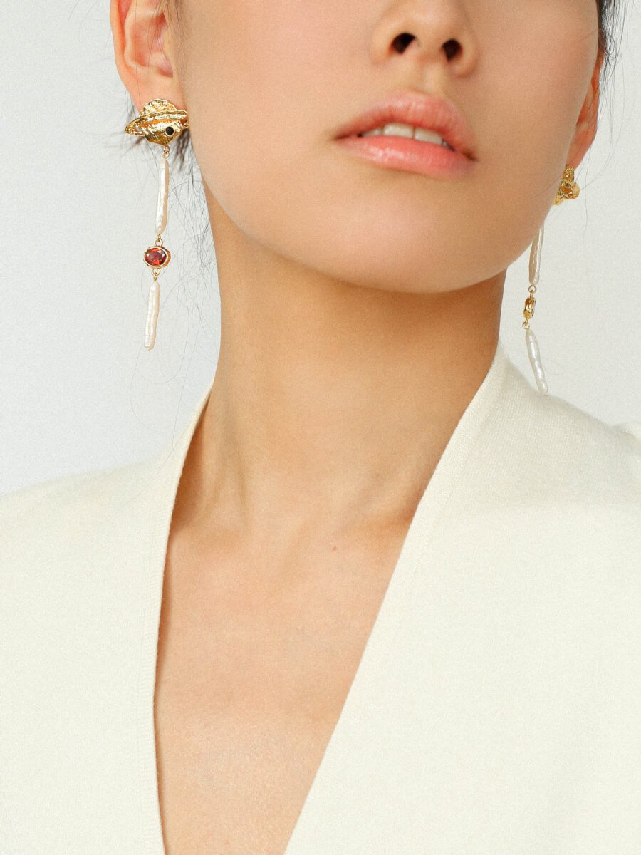 Planet Threader Earrings: 8.8cm length (approx. 3.4″ elegant bar drop/threader style)