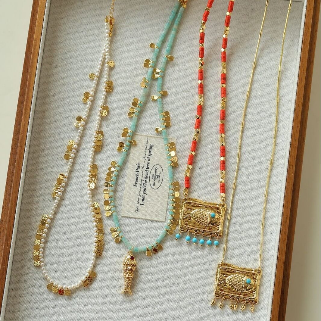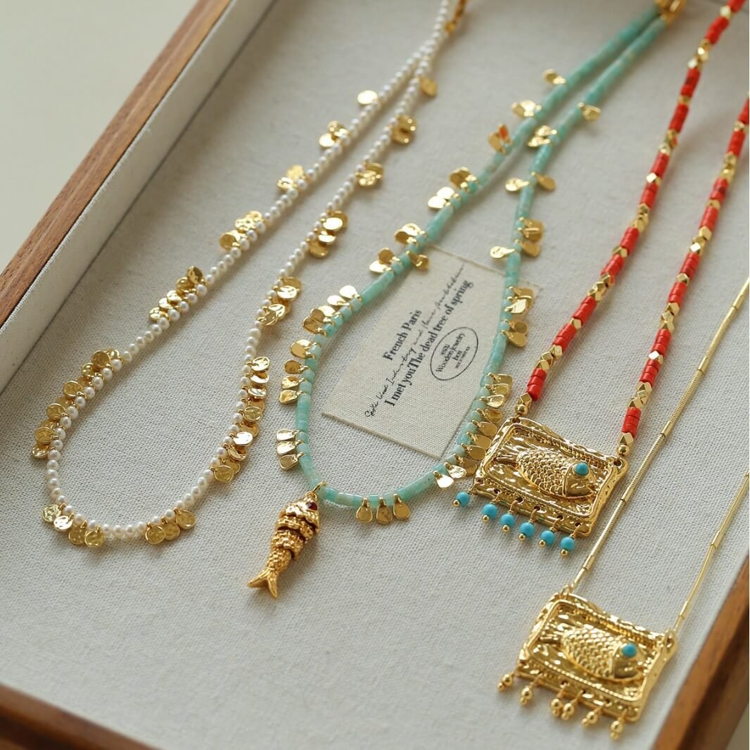 Free-Spirited Bohemian Elegance Embrace the ultimate vintage and ethnic aesthetic with our beautifully crafted Boho Fish Charm Necklace. The playful fish pendant symbolizes freedom, luck, and joy. Combined with a rich texture of mixed beads, this piece effortlessly brings a relaxed, holiday-ready vibe to your everyday style.