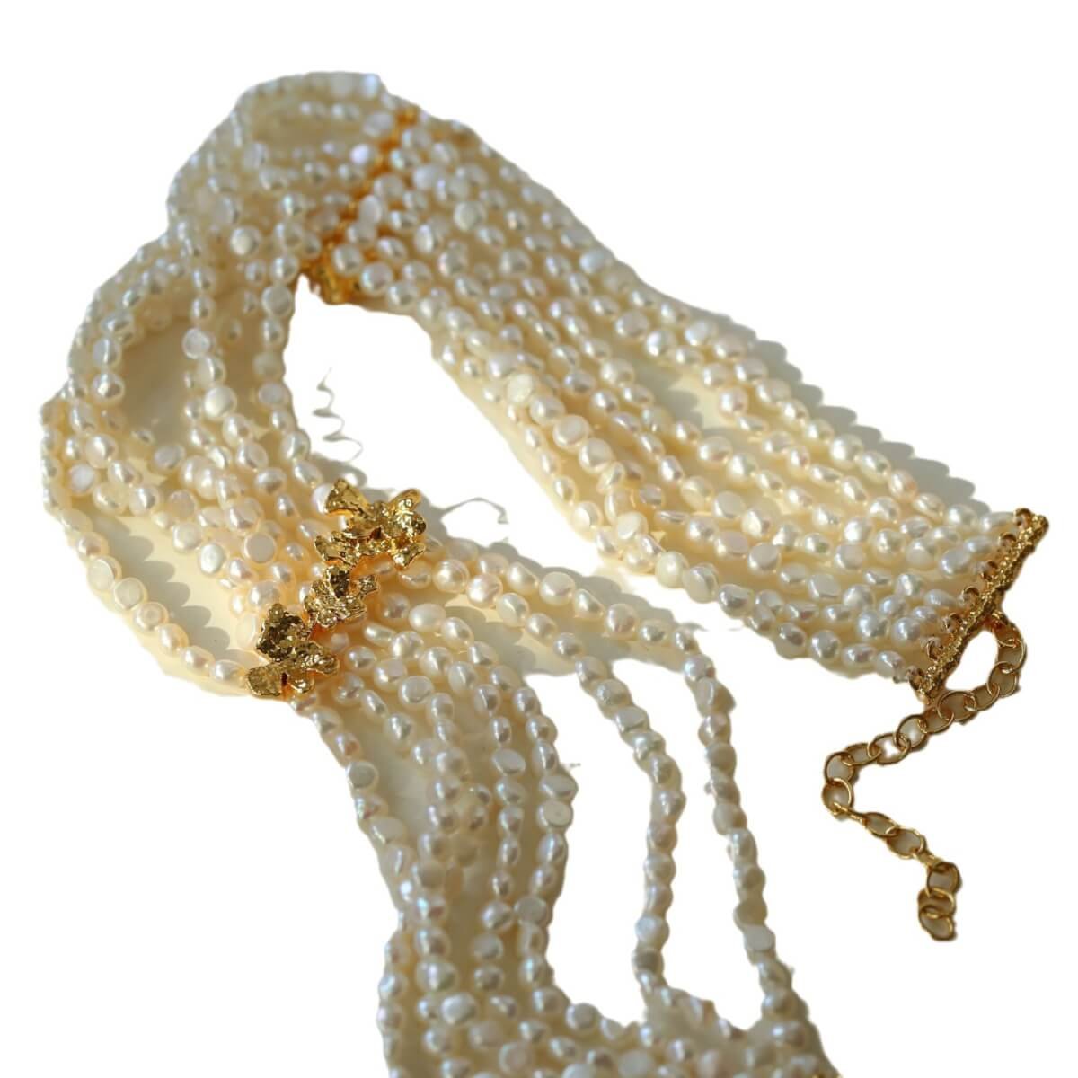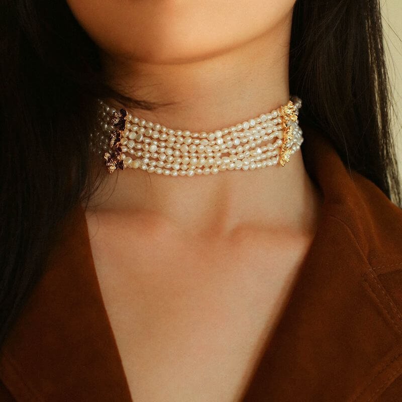 Timeless Parisian Glamour Make an unforgettable entrance with our Multi-Layer Mini Pearl Choker. Inspired by classic vintage couture and royal elegance, this breathtaking piece features rows of delicate mini pearls that beautifully wrap around your collarbone. Weighing a substantial 60 grams, it offers an incredibly expensive feel and a perfect, luxurious drape that stays elegantly in place.