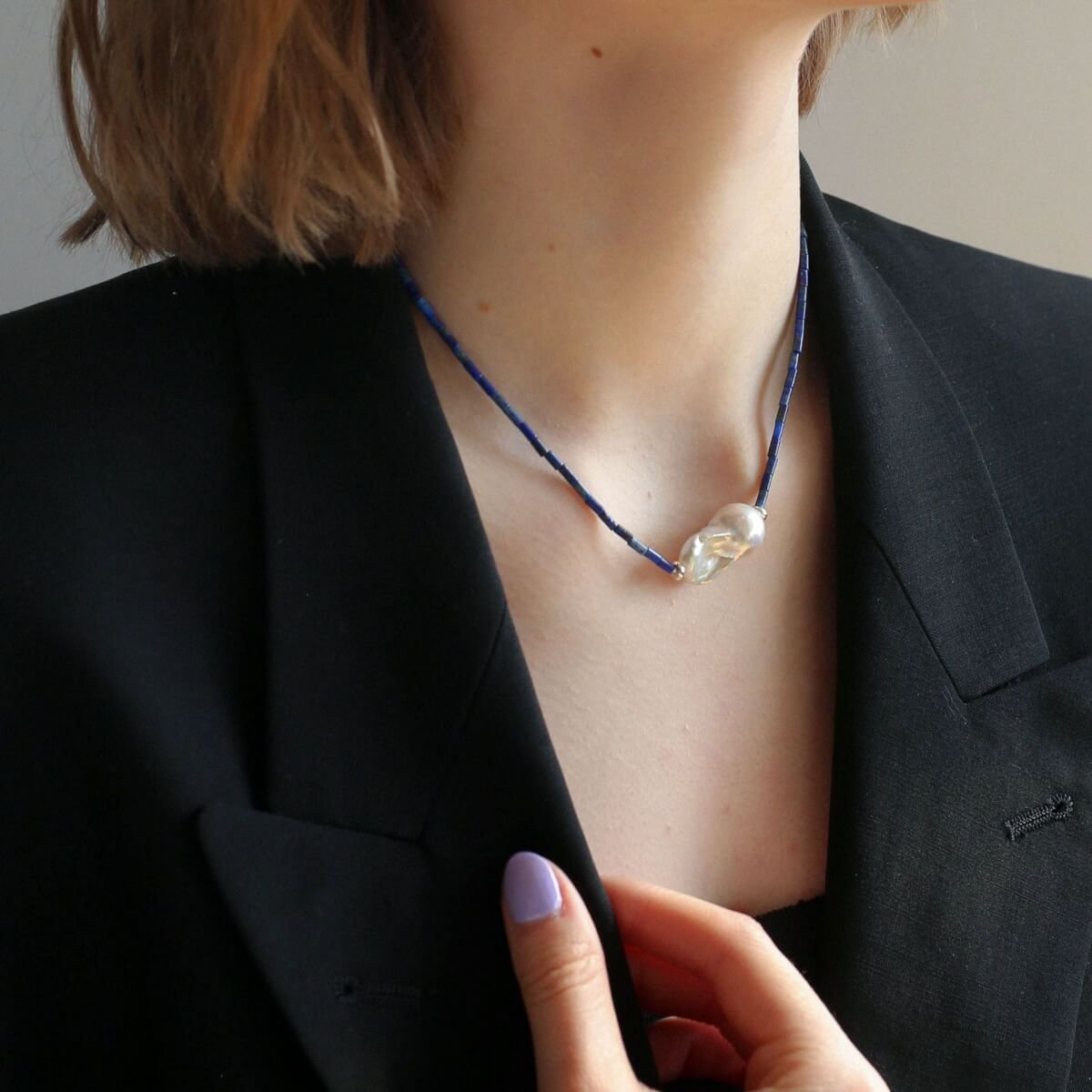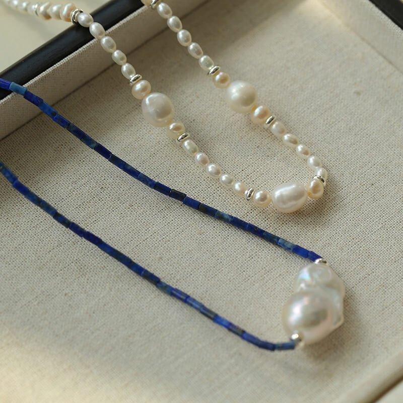A Touch of Midnight Blue Discover the effortless charm of our Lapis Lazuli & Baroque Pearl Collection. The deep, captivating blue of natural Lapis Lazuli pairs perfectly with the organic beauty of freshwater Baroque pearls, creating a truly unique and artistic piece that brightens your complexion and catches every eye.